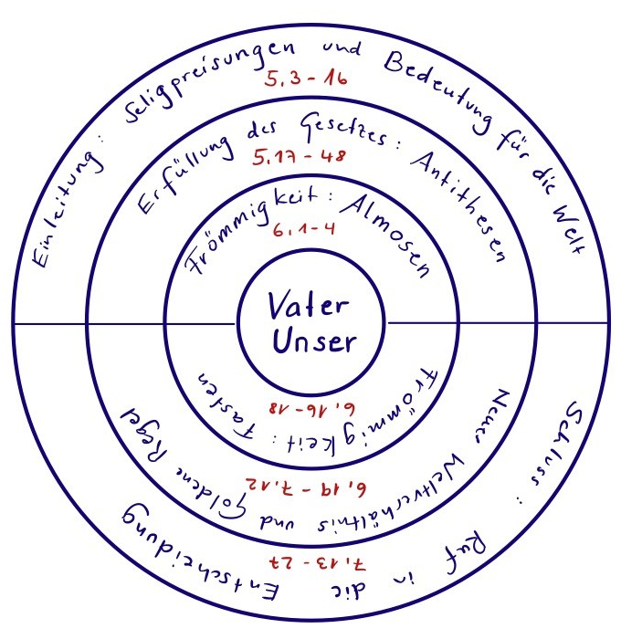 Die Bergpredigt (Mt 5–7) ist die erste und wirkmächtigste der 5 großen Reden Jesu im Matthäusevangelium. Programmatisch hält sie fest, wie das Zusammenleben im „Himmelreich“, im hier und jetzt anbrechenden Reich Gottes, aussehen soll.