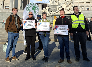 Rafael Haigermoser (KJÖ) zitiert bei Kundgebung  vor dem  Parlament aus der Enzyklika Laudato si